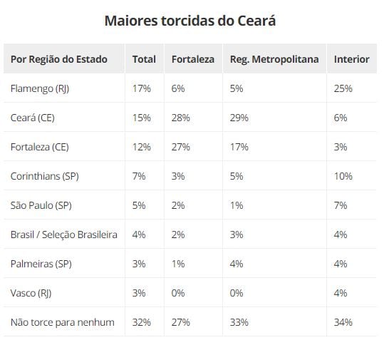 A reportagem do Sou Fortaleza traz para o leitor o ranking de torcida do estado do Ceará.