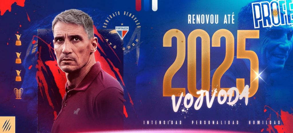 “É com muita alegria que anunciamos para a nossa torcida e para o futebol brasileiro como um todo a ampliação do vínculo do Vojvoda com o Fortaleza até o fim de 2025. Isso mostra o quanto acreditamos no trabalho de médio e a longo prazo, confiamos o comando técnico da equipe a ele e o quanto estamos trabalhando em conjunto na formatação do elenco ao longo desses anos sempre com a participação dele”, celebrou o CEO Marcelo Paz no anúncio oficial da renovação de Vojvoda.