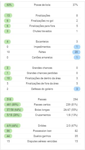 E, os torcedores que não puderam acompanhar o jogo e perderam como foi o jogo com relação as estatísticas, o site do ‘sofascore’ traz maiores informações com relação aos confrontos.