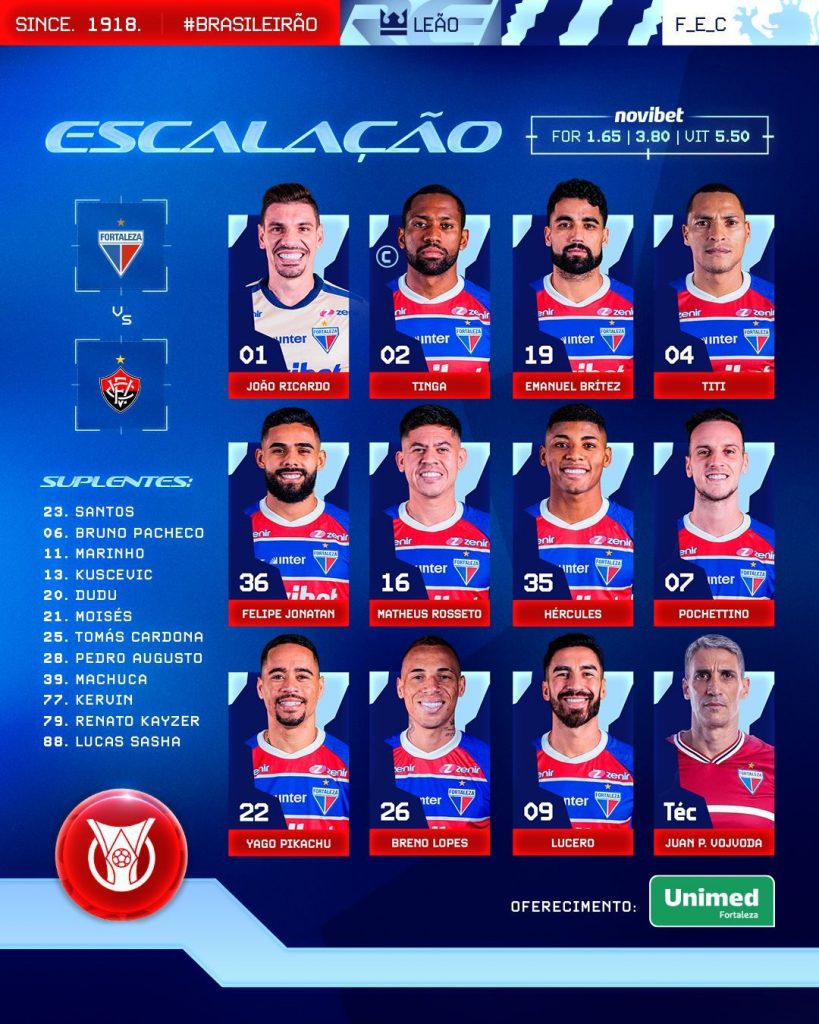 Nesta quarta-feira, 17, o Fortaleza tem pela frente mais um grande desafio válido pela elite do futebol nacional. Na Arena Castelão, o Leão do Pici busca mais três importantes pontos em casa no Campeonato Brasileiro diante do Vitória e não deve medir esforços para seguir avançando rumo à tão sonhada classificação para a Copa Libertadores de 2025.