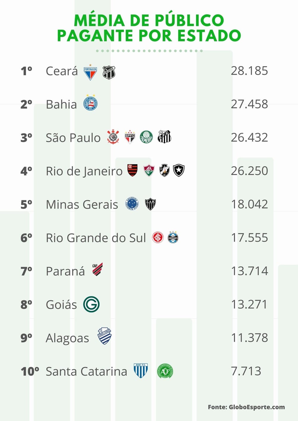 A reportagem do Sou Fortaleza traz para o leitor informações sobre a média de público da série A, por estado. Com destaque para o estado do Ceará que lidera o ranking.